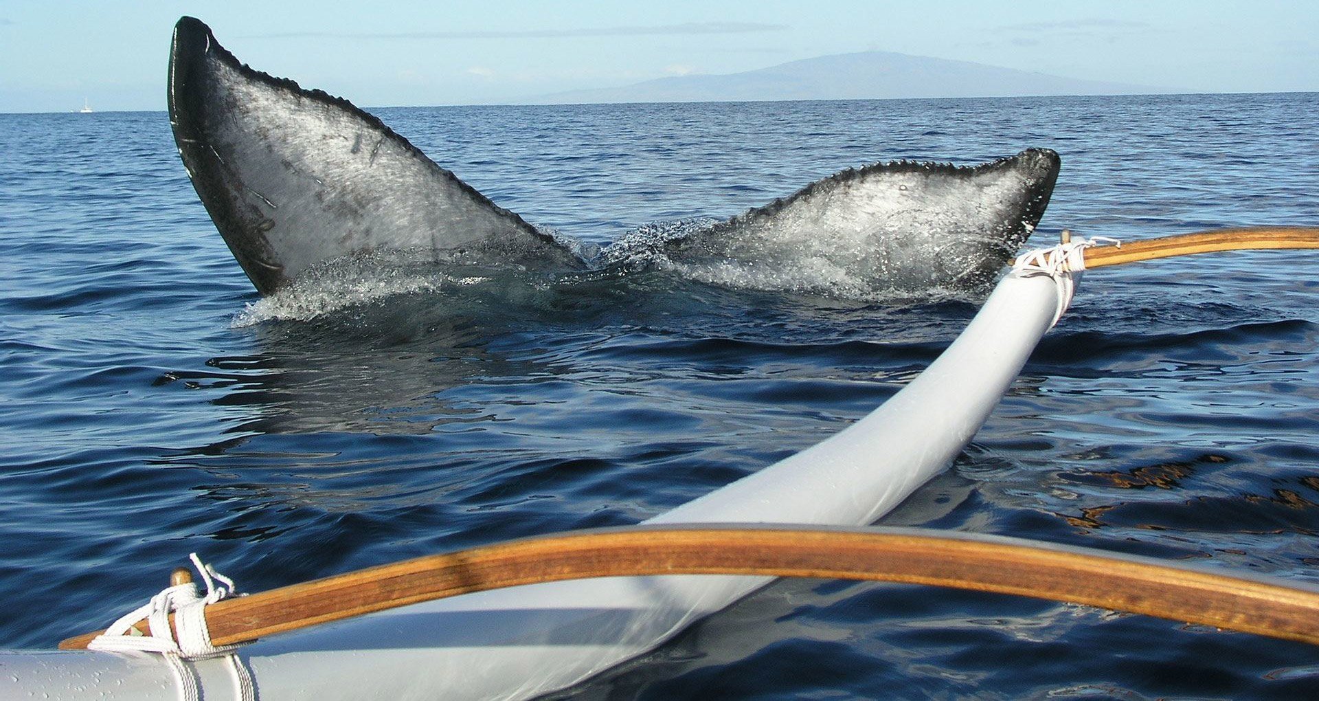 Look out your window (just not while you’re driving please ? you will see whales almost anywhere in Maui’s waters. There are also whale watch tours put on by different organizations that generally handle dozens of people in large crowds, drinking Mai Tais and getting sea sick, which might be good for some, but maybe this is not what you had in mind when admiring mother nature. A Maui whale watching Canoe Tour is unlike anything else. No matter how many times I see whales on a whale watch tour, it feels like the first time. All encounters are unique, as we respect the whales and the laws that mandate us to not pursue the whales or get to close, but sometimes they come to us, and boy what an experience that is.